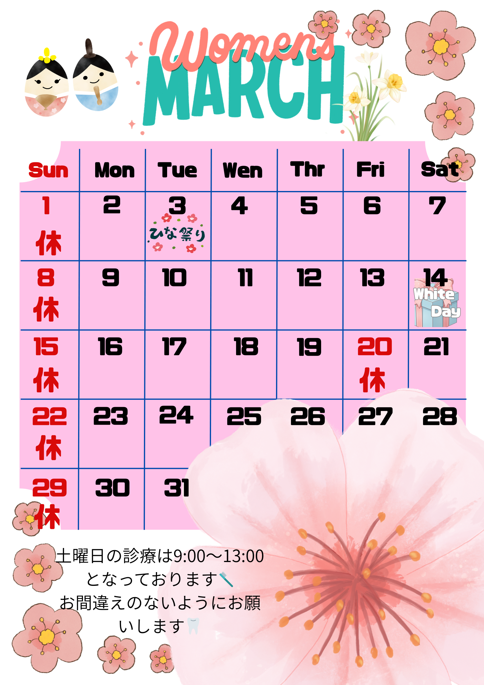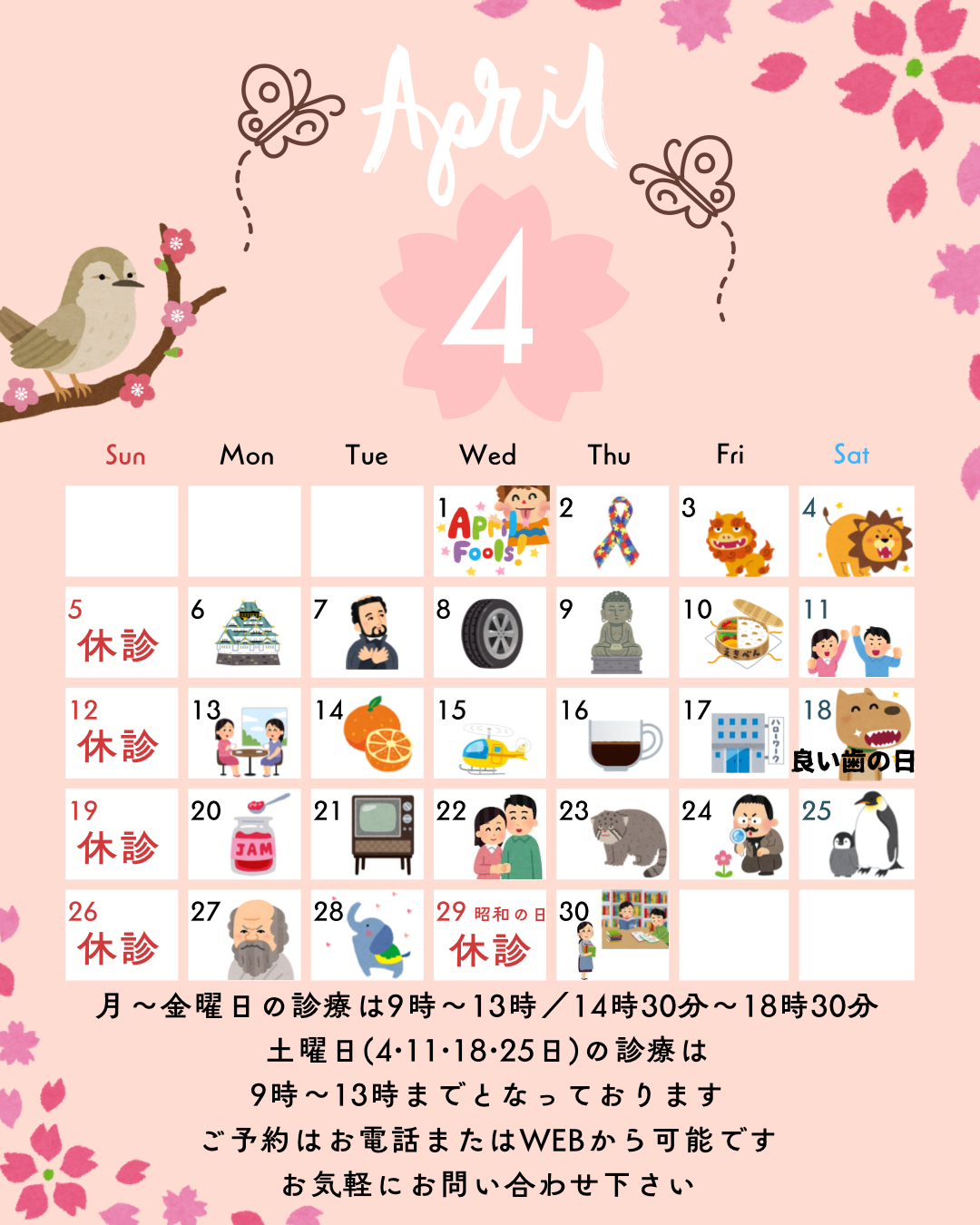 まなべ歯科(門真市 大和田駅徒歩1分)の4月のスケジュール