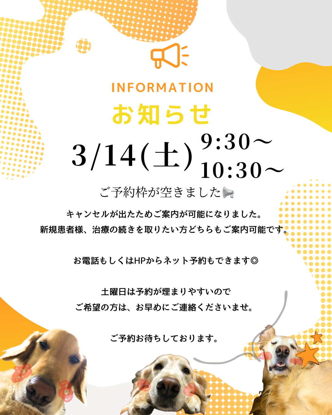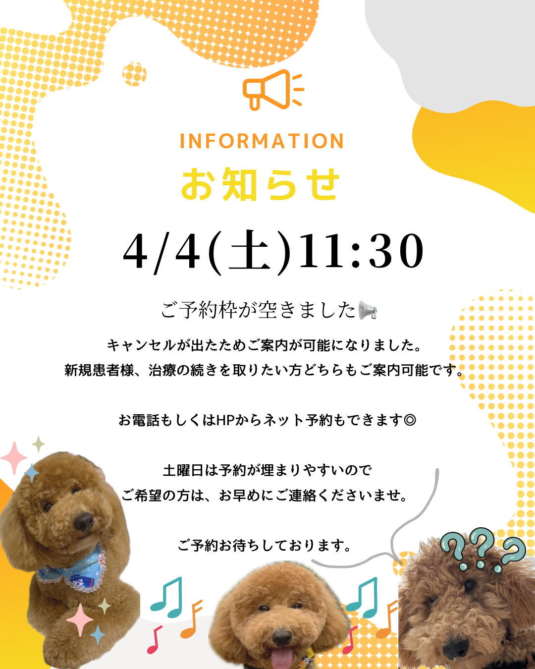 前回も土曜日の診療枠のキャンセルが出たご案内させて頂きました🗓️