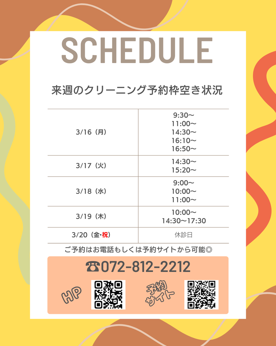 平日も枠をなんとか空けてご案内させて頂きますのでWEB予約で❌となっていても一度当院までお電話くださいね☎️
