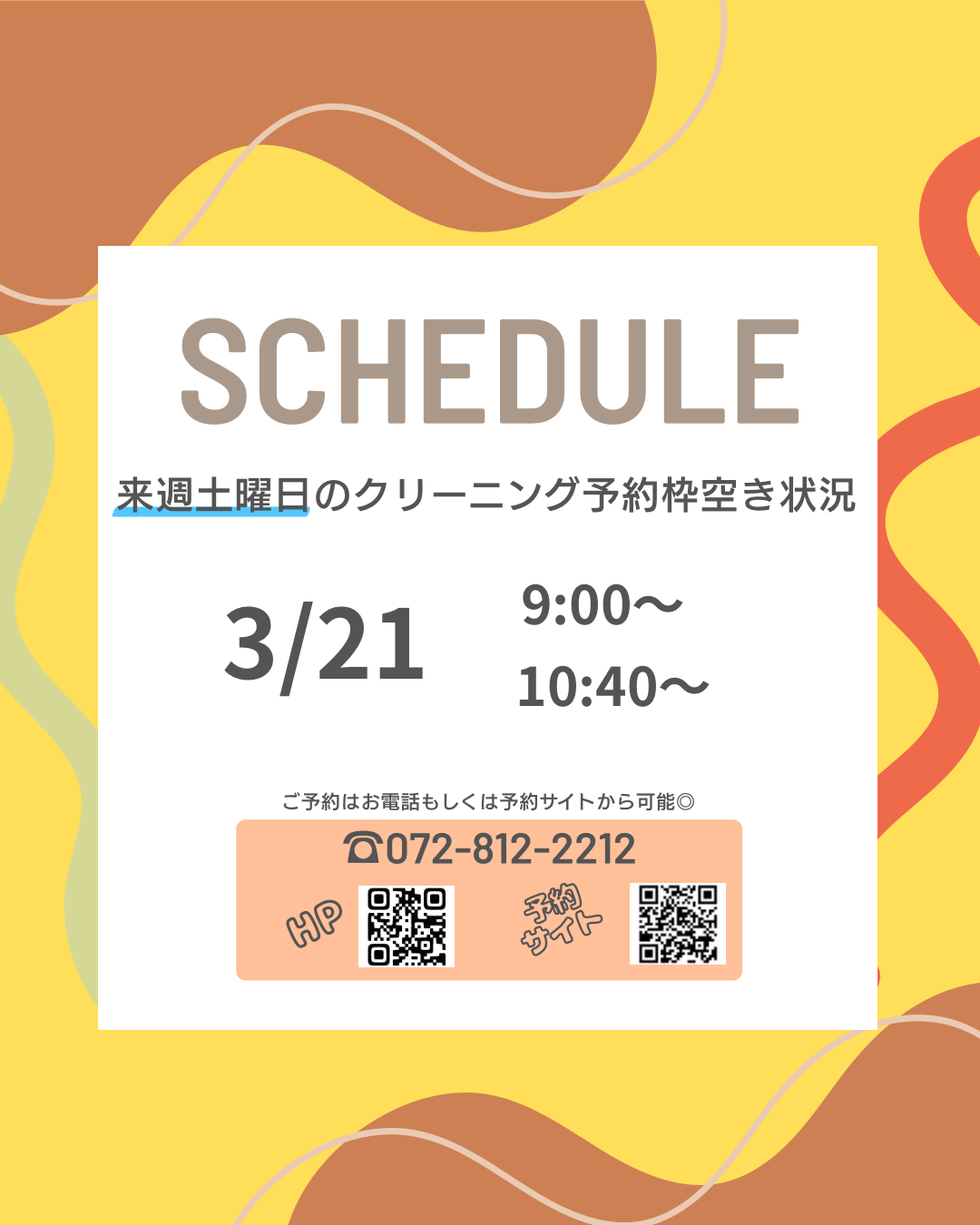 お電話では週明け月曜日よりお取り可能です📱(072−812−2212)