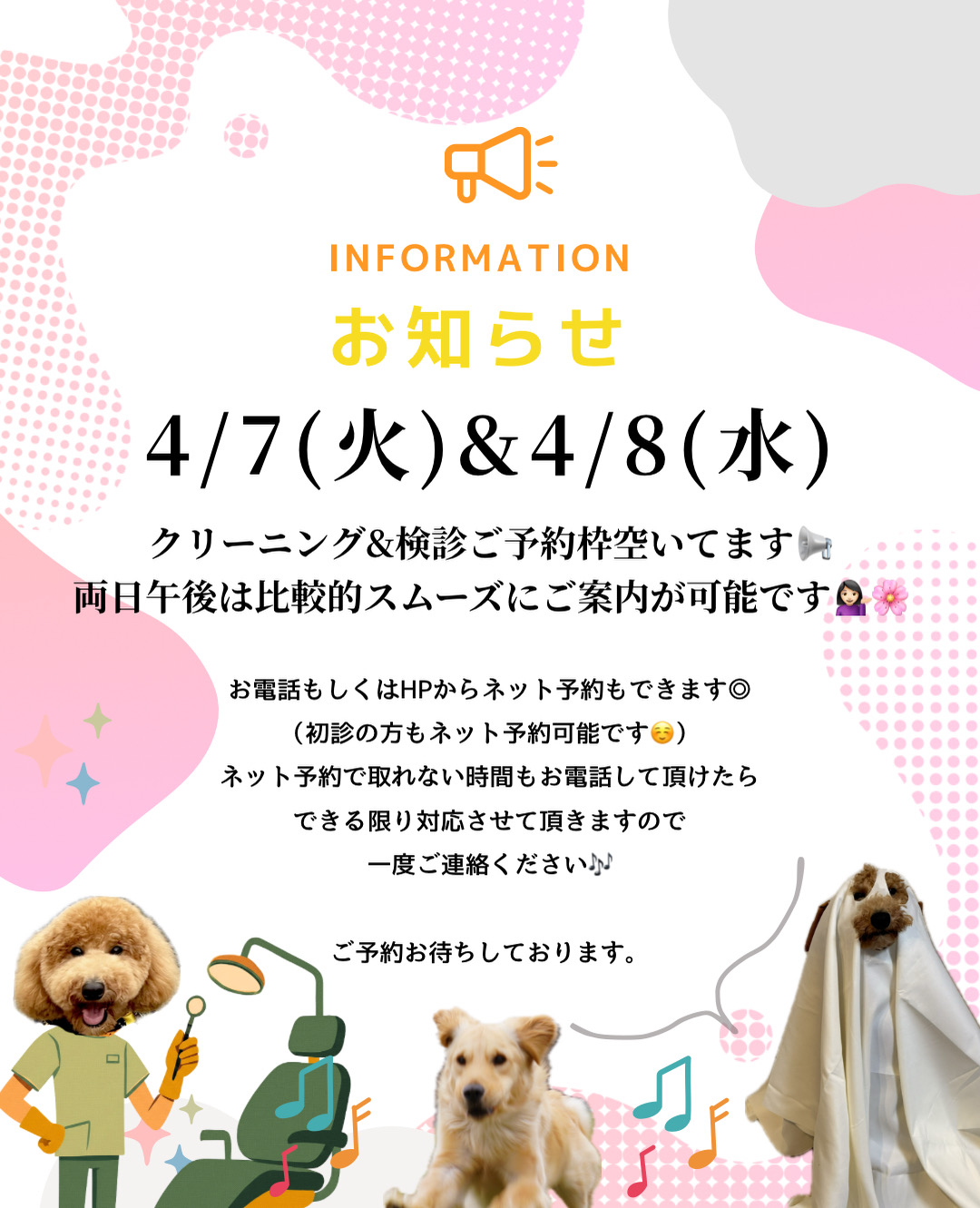 それに伴いクリーニング枠もお取りしやすくなると思いますので新規患者様も受け入れやすくしております📱
